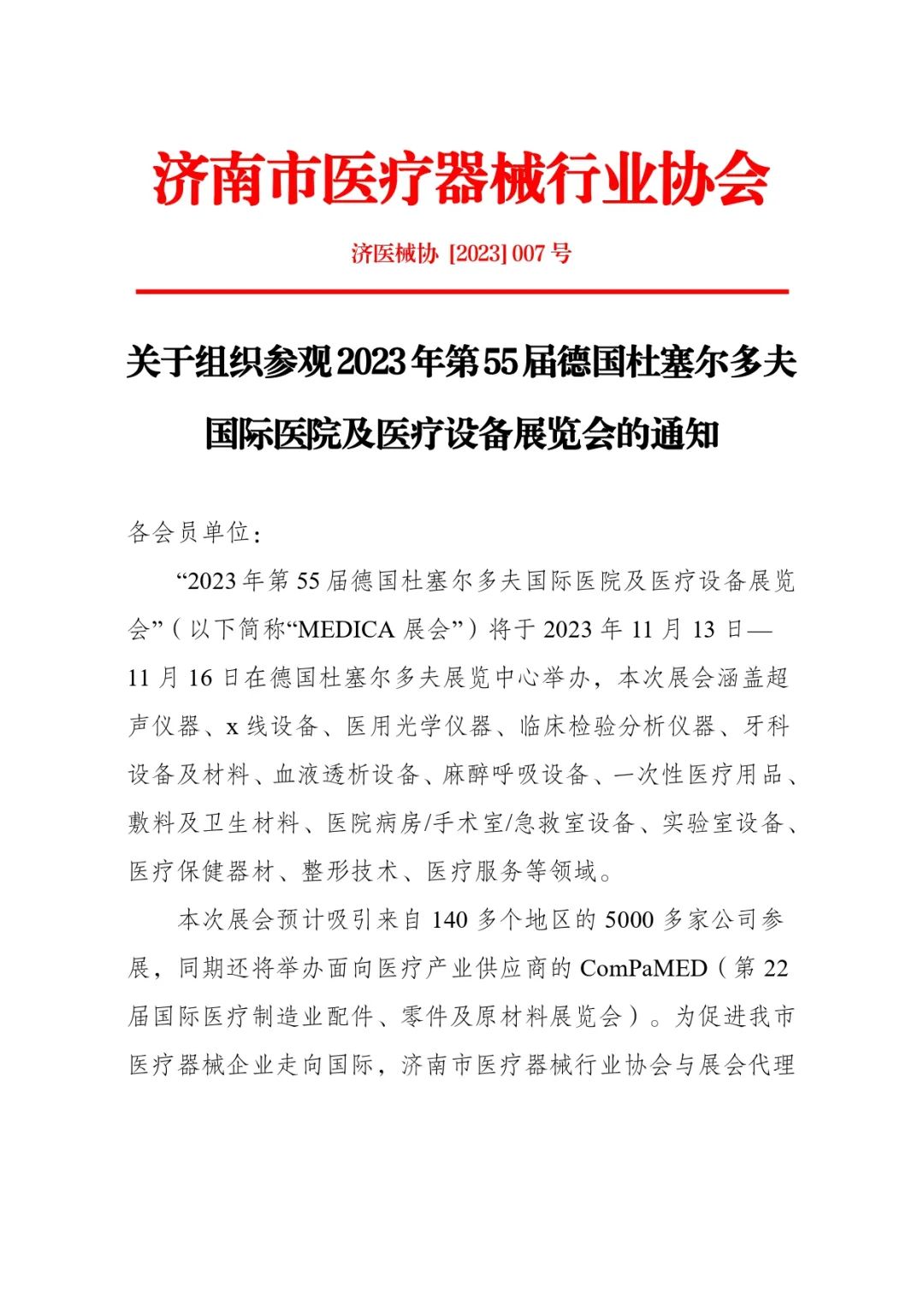 2023 年第 55 屆德國(guó)杜塞爾多夫國(guó)際醫(yī)院及醫(yī)療設(shè)備展覽會(huì)觀展報(bào)名通知
