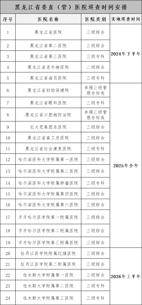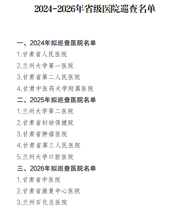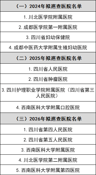 各地擬巡查醫(yī)院名單及時間安排: