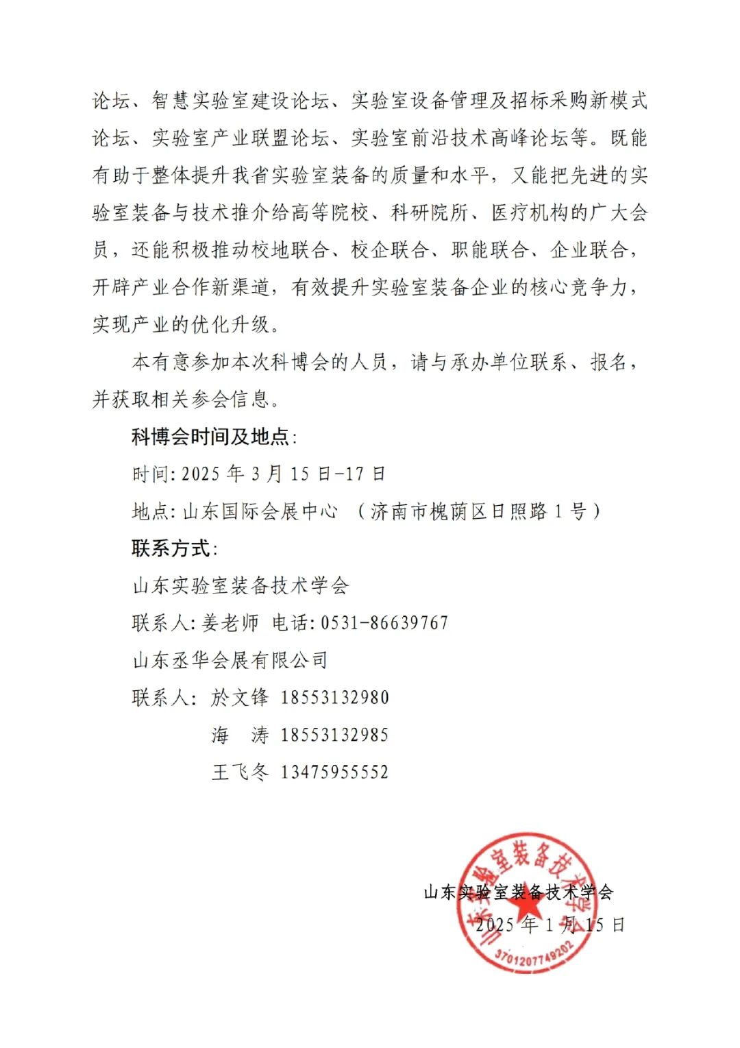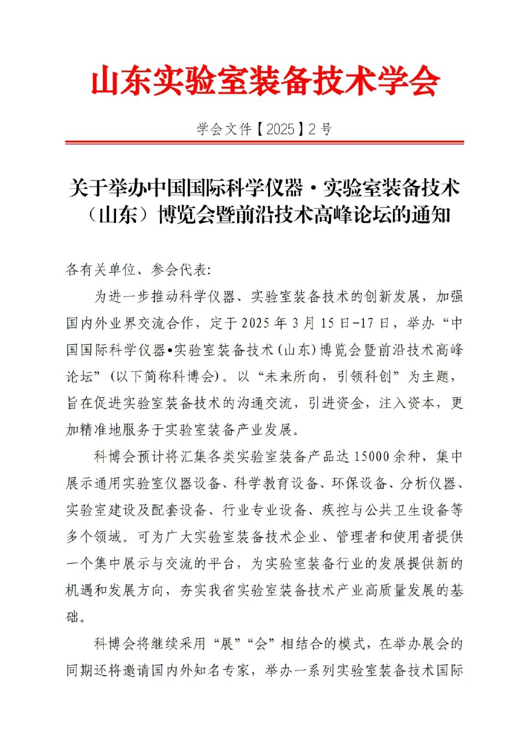 展會通知丨關(guān)于舉辦中國國際科學(xué)儀器·實(shí)驗室裝備技術(shù)(山東)博覽會暨前沿技術(shù)高峰論壇的通知